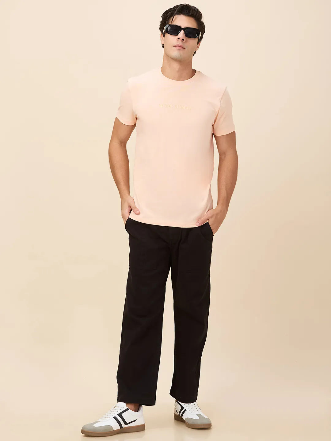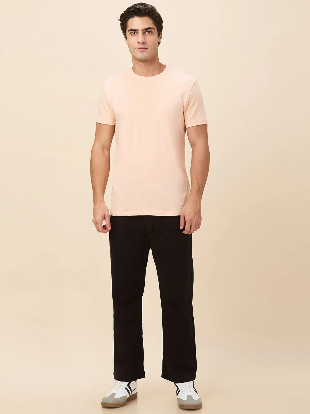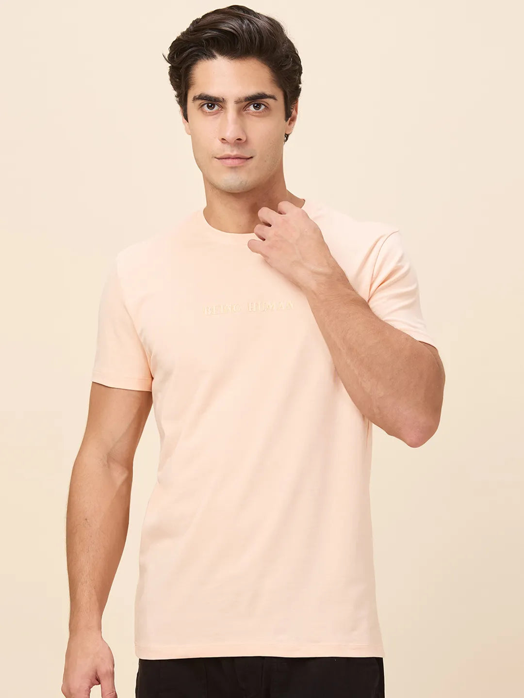 Embrace soft sophistication with this peach T-shirt from Being Human. The solid color and regular fit create a clean, casual look that's perfect for everyday wear. Its gentle hue adds a touch of warmth to your outfit, making it an ideal choice for laid-back occasions.