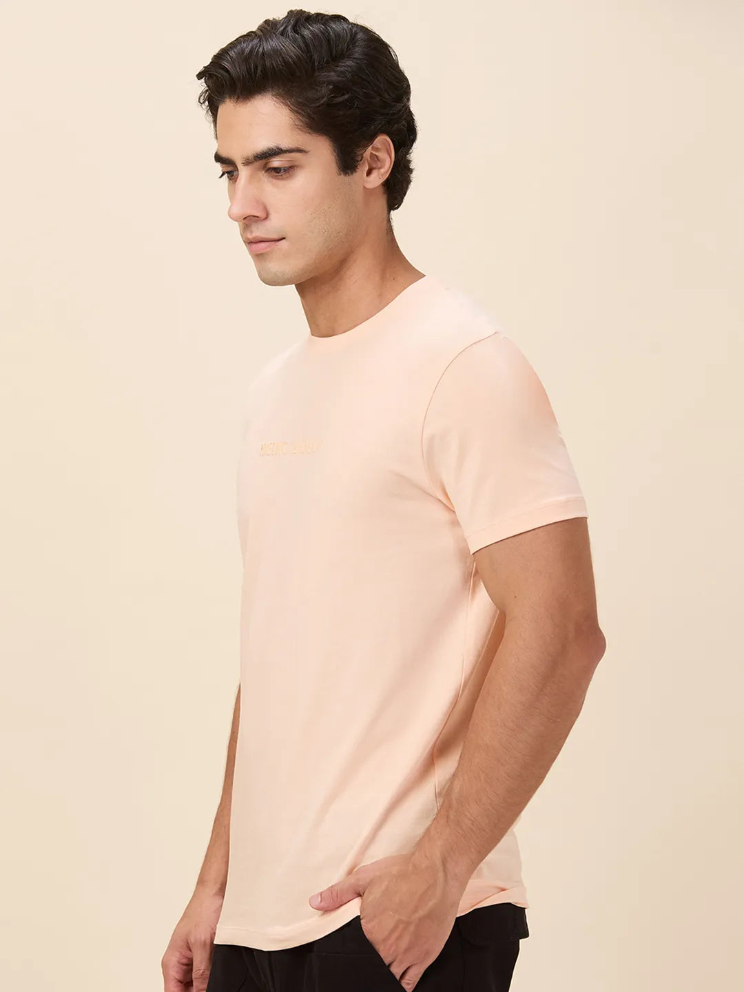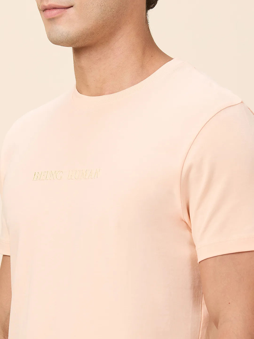 Peach Slim Fit Round Neck Men's T-Shirt by Being Human Clothing