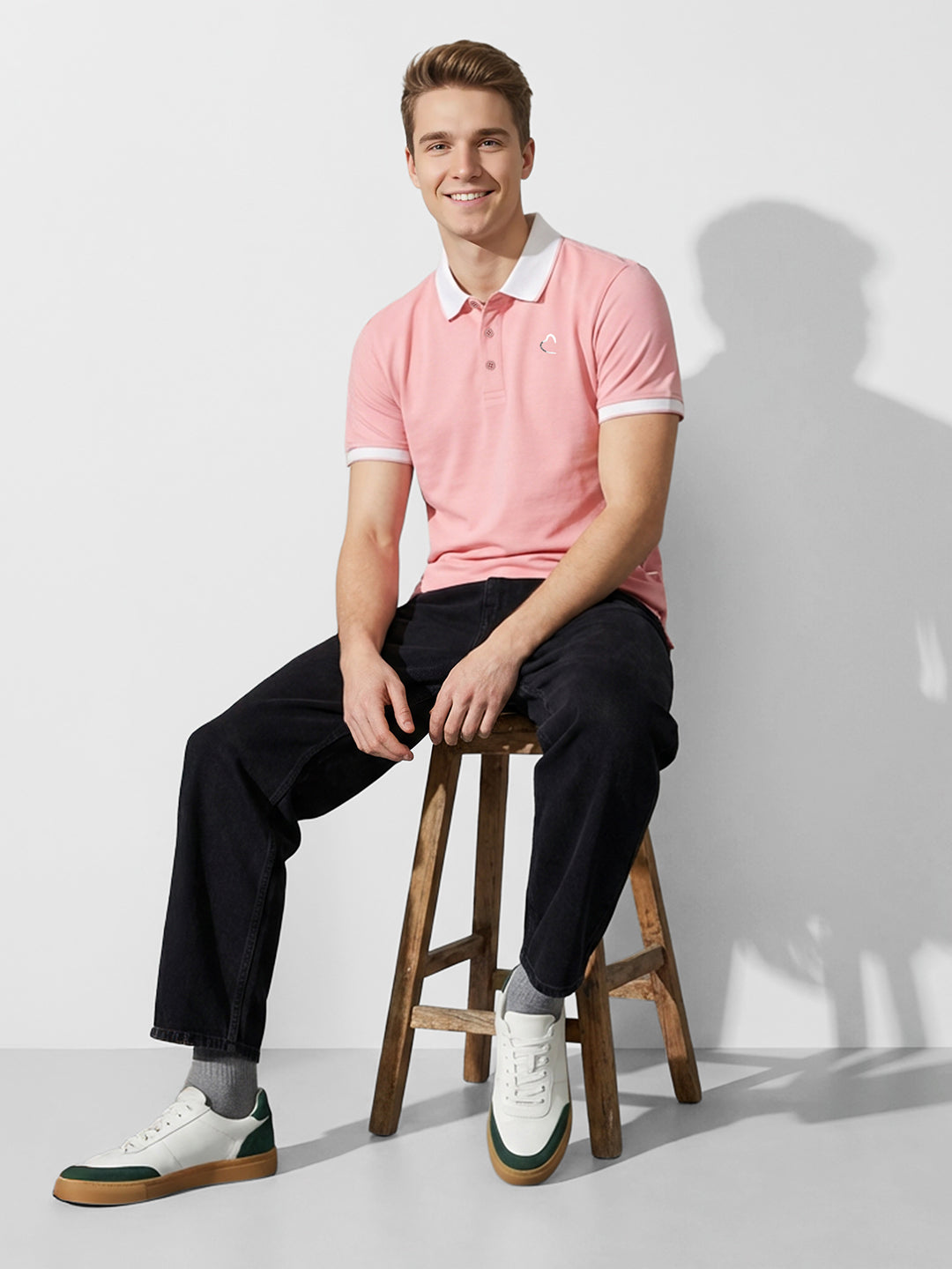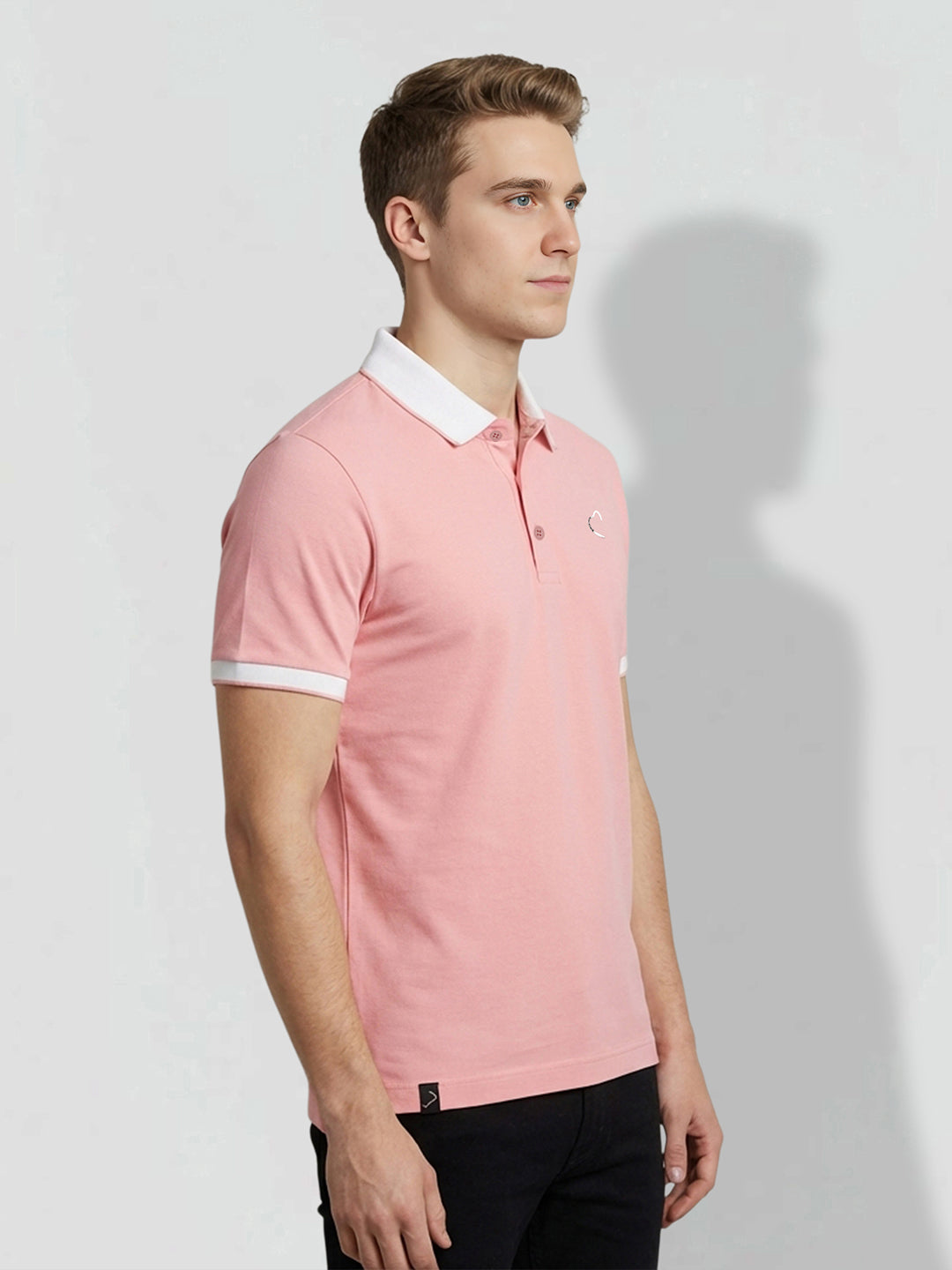 Step up your casual game with this pink polo. It features a contrasting white collar and sleeve hem for a clean, classic look. Crafted for comfort, it's an easy choice for weekend outings or relaxed weekdays.
