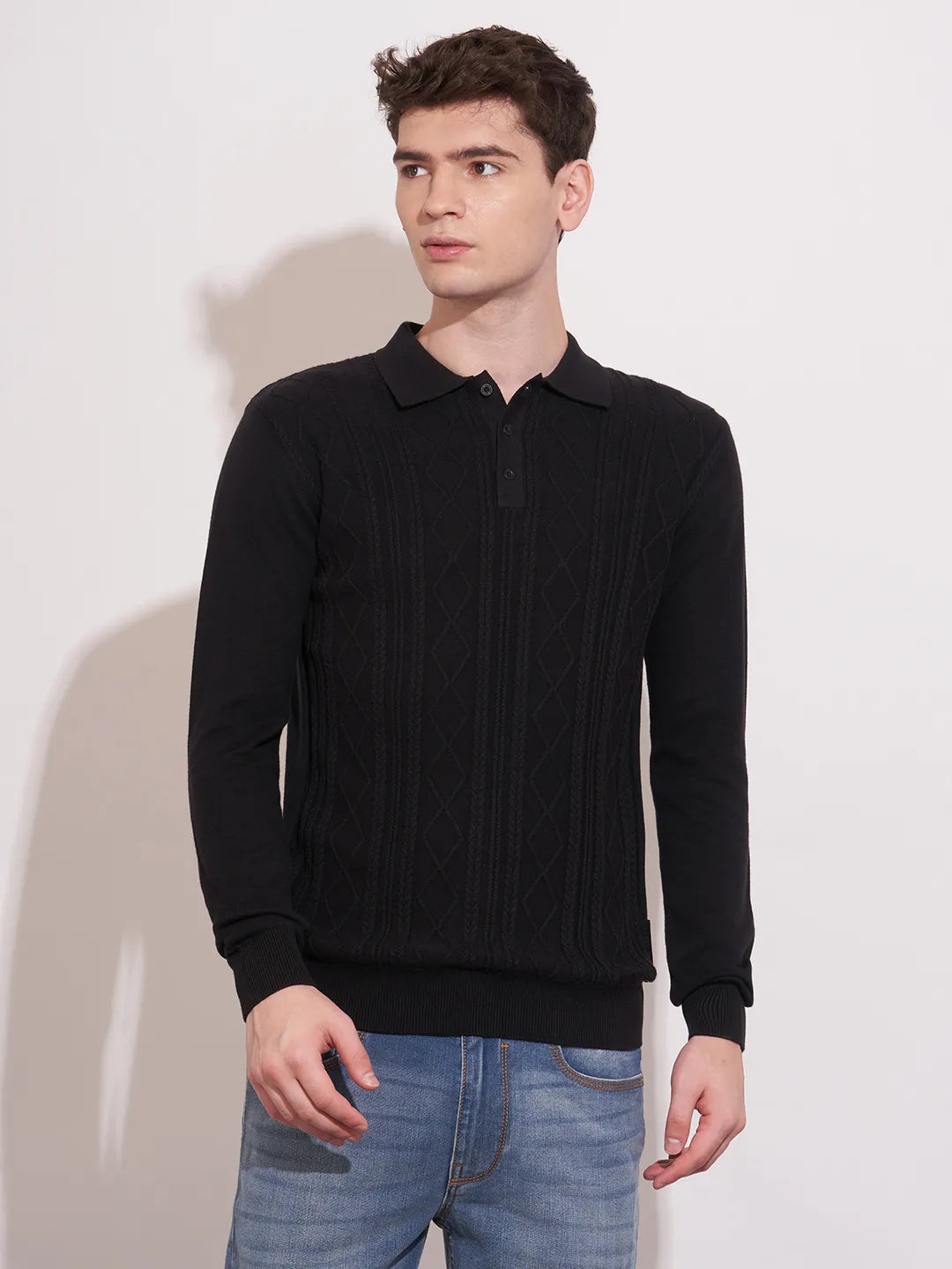 Being Human Black Regular Fitpolo Neck Polo Neck For Men