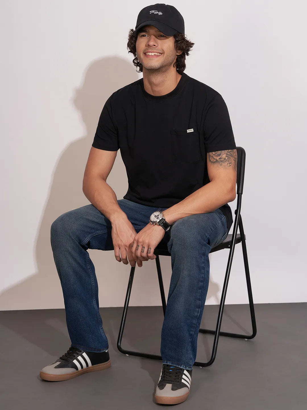 Black Easy Fit Round Neck Men's T-Shirt by Being Human Clothing