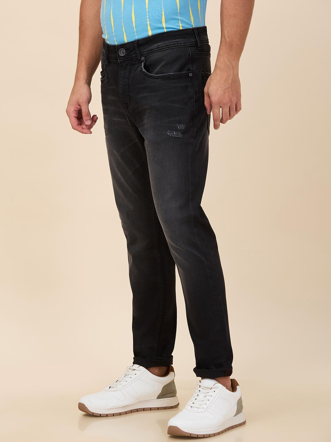 Black Cropped Fit Denims For Men By Being Human Clothing