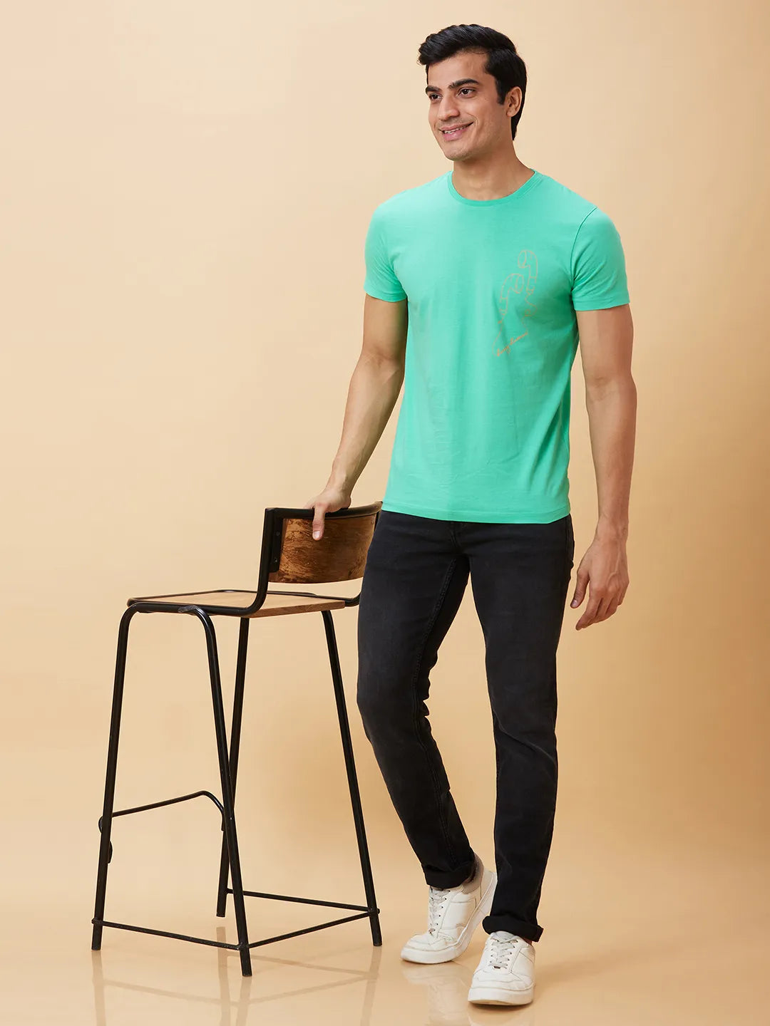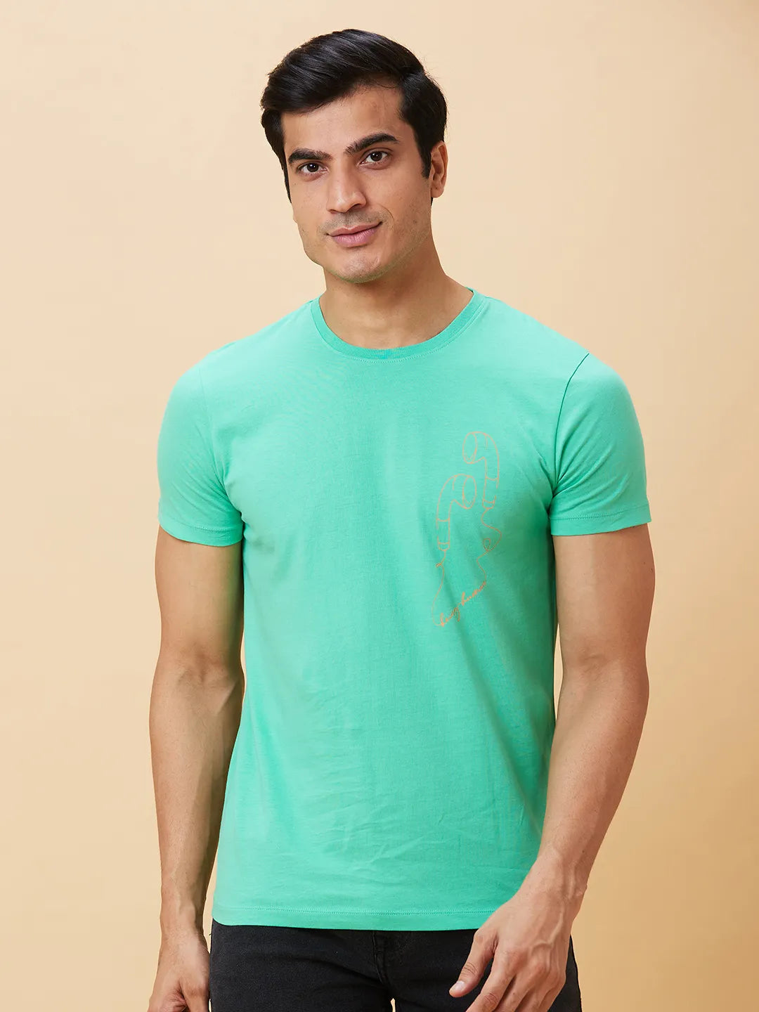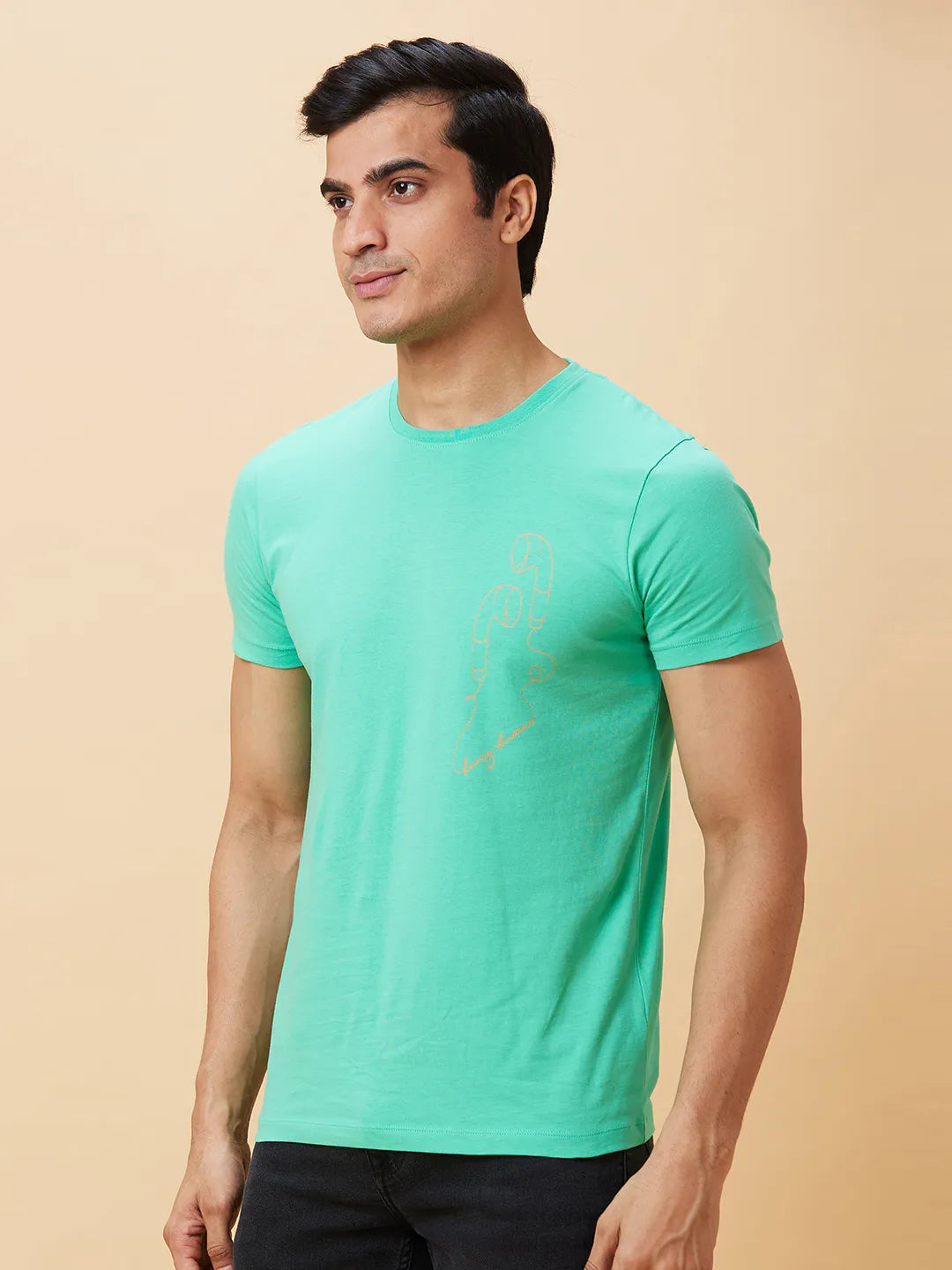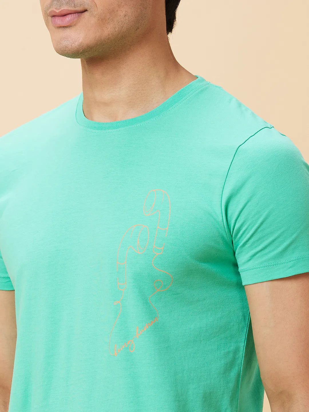 Jade Green Regular Fit Round Neck Men's T-Shirt by Being Human Clothing