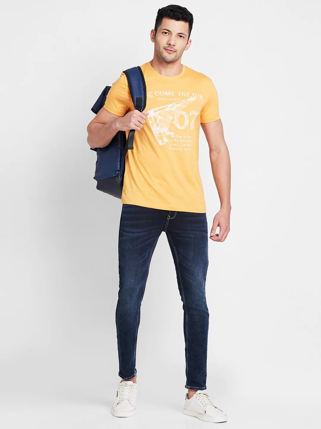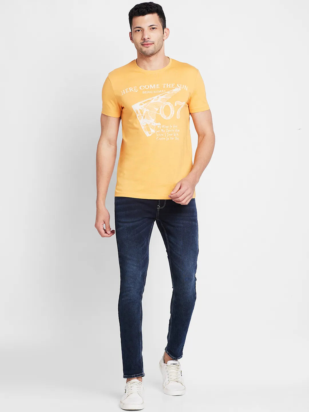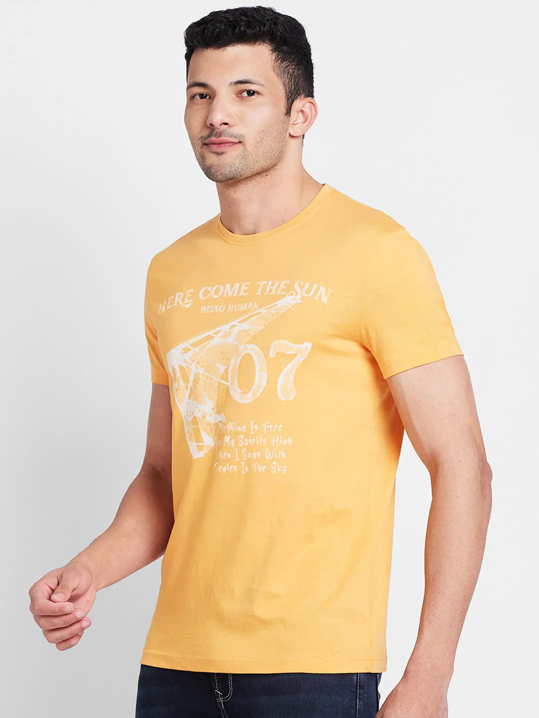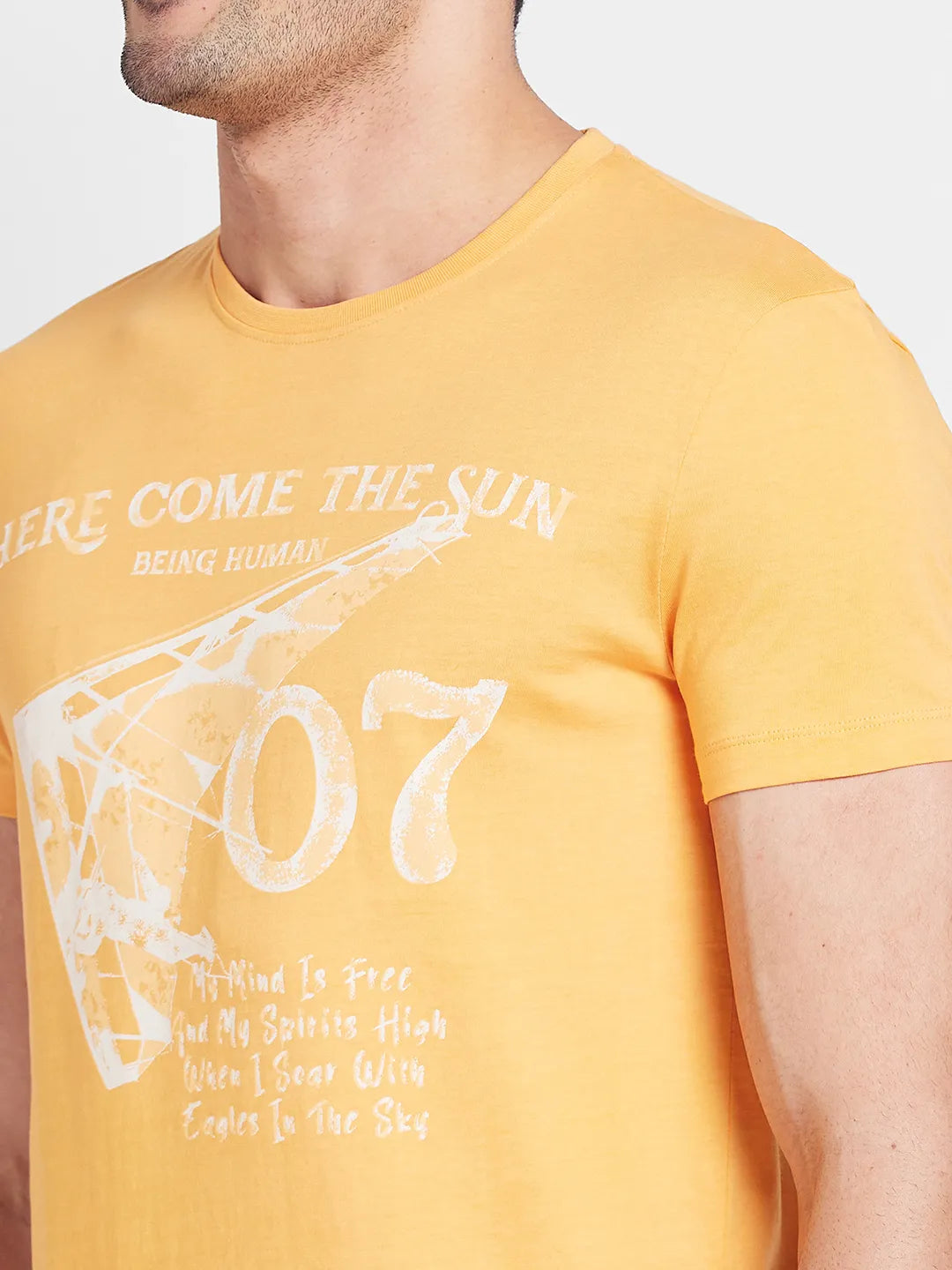 Orange Regular Fit Round Neck Men's T-Shirt by Being Human Clothing