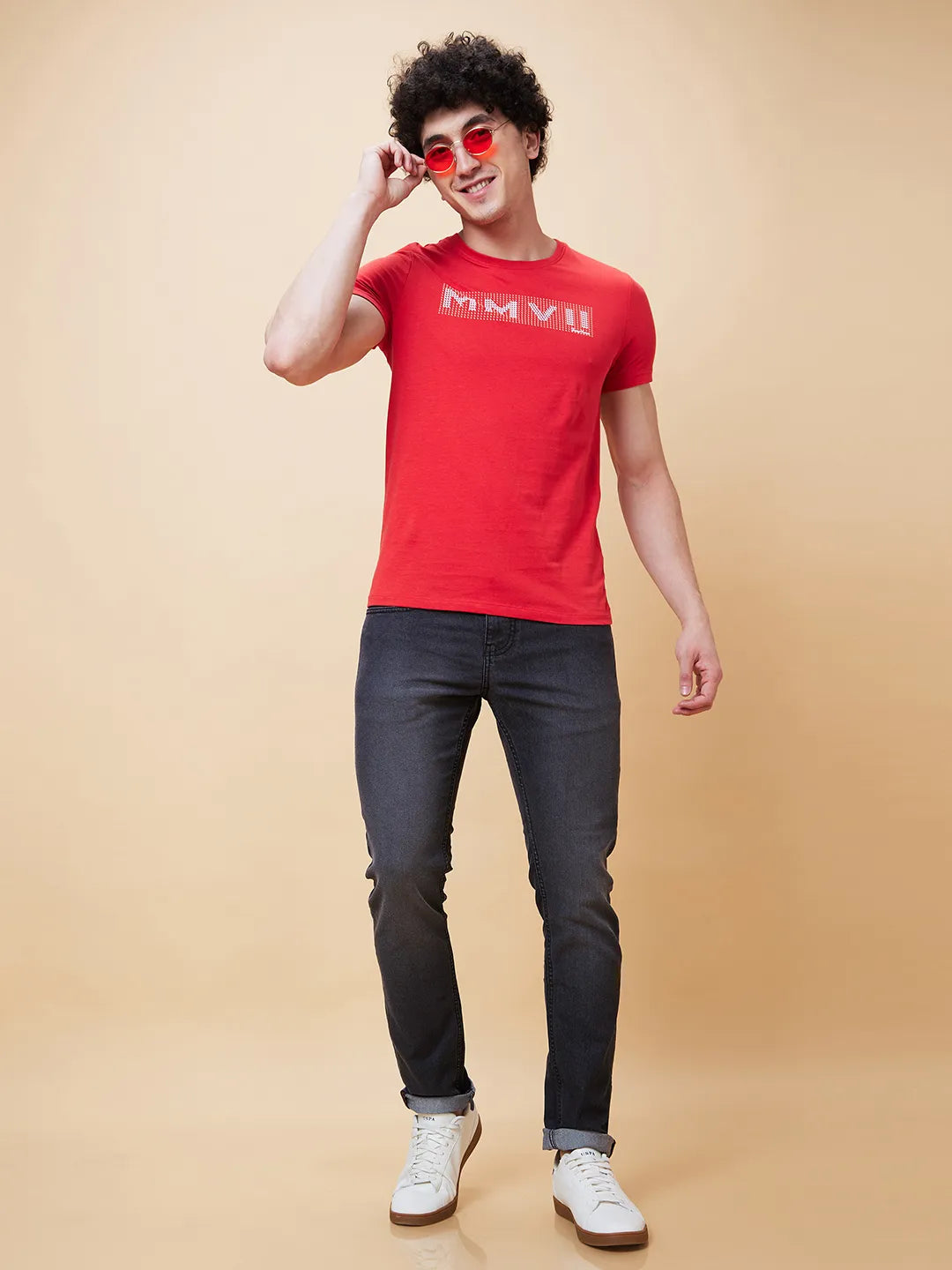 Red Regular Fit Men's Short Sleeves T-Shirt by Being Human Clothing