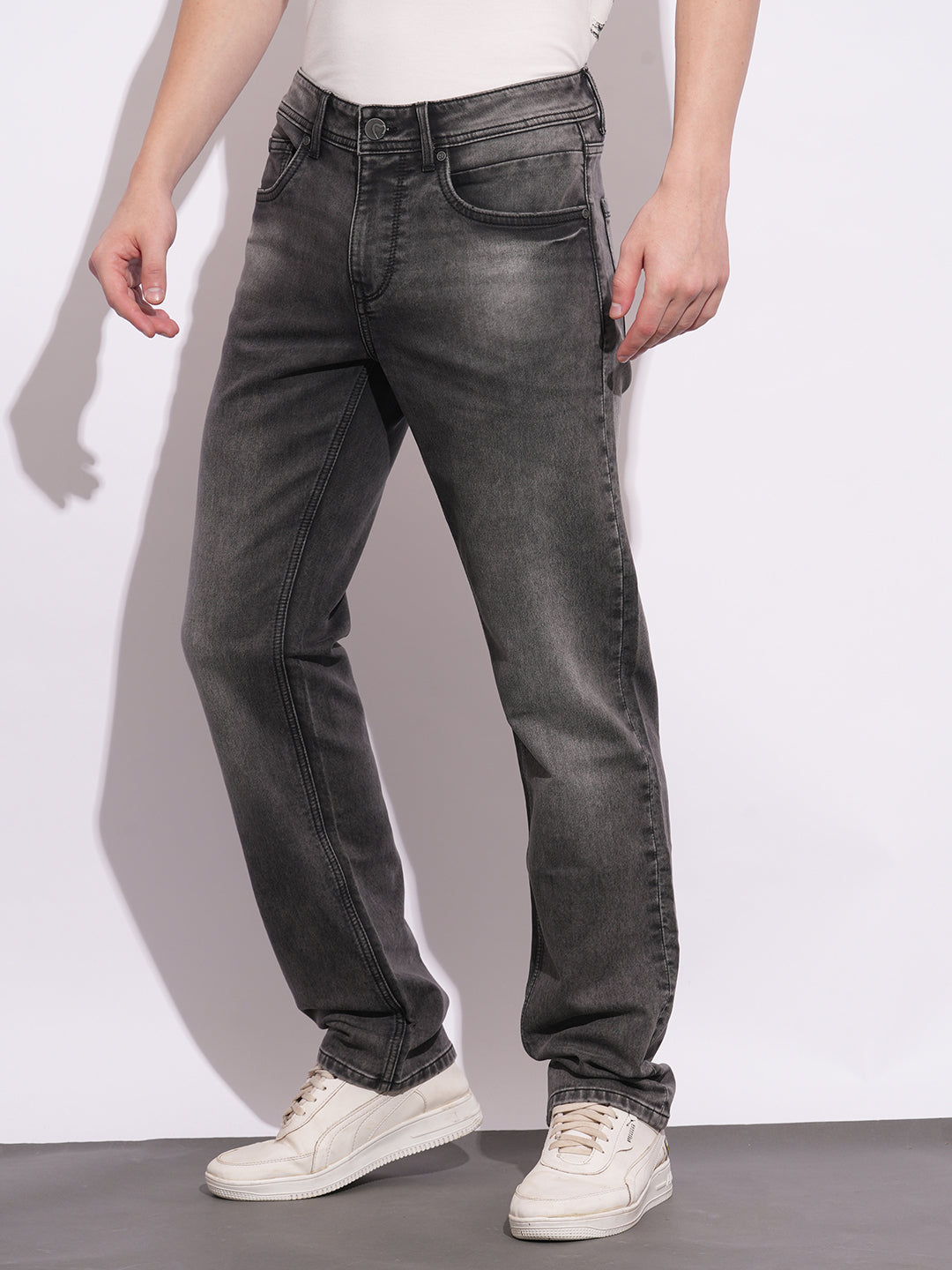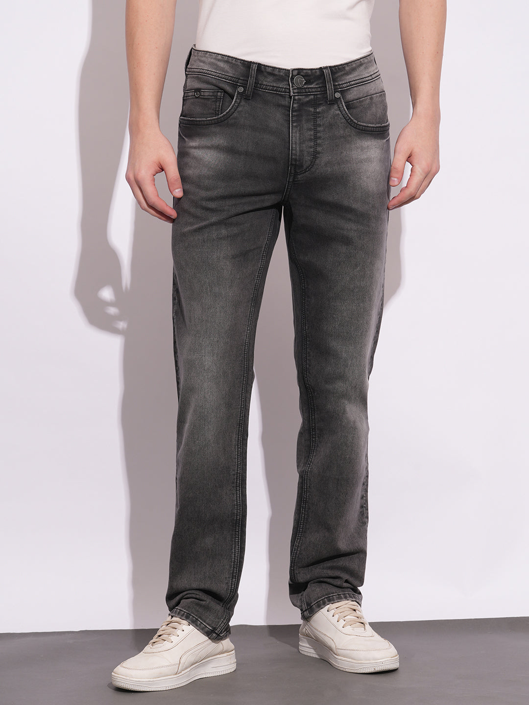 Grey Straight Fit Denims For Men By Being Human Clothing