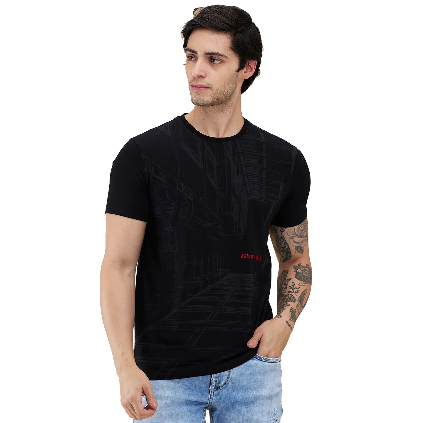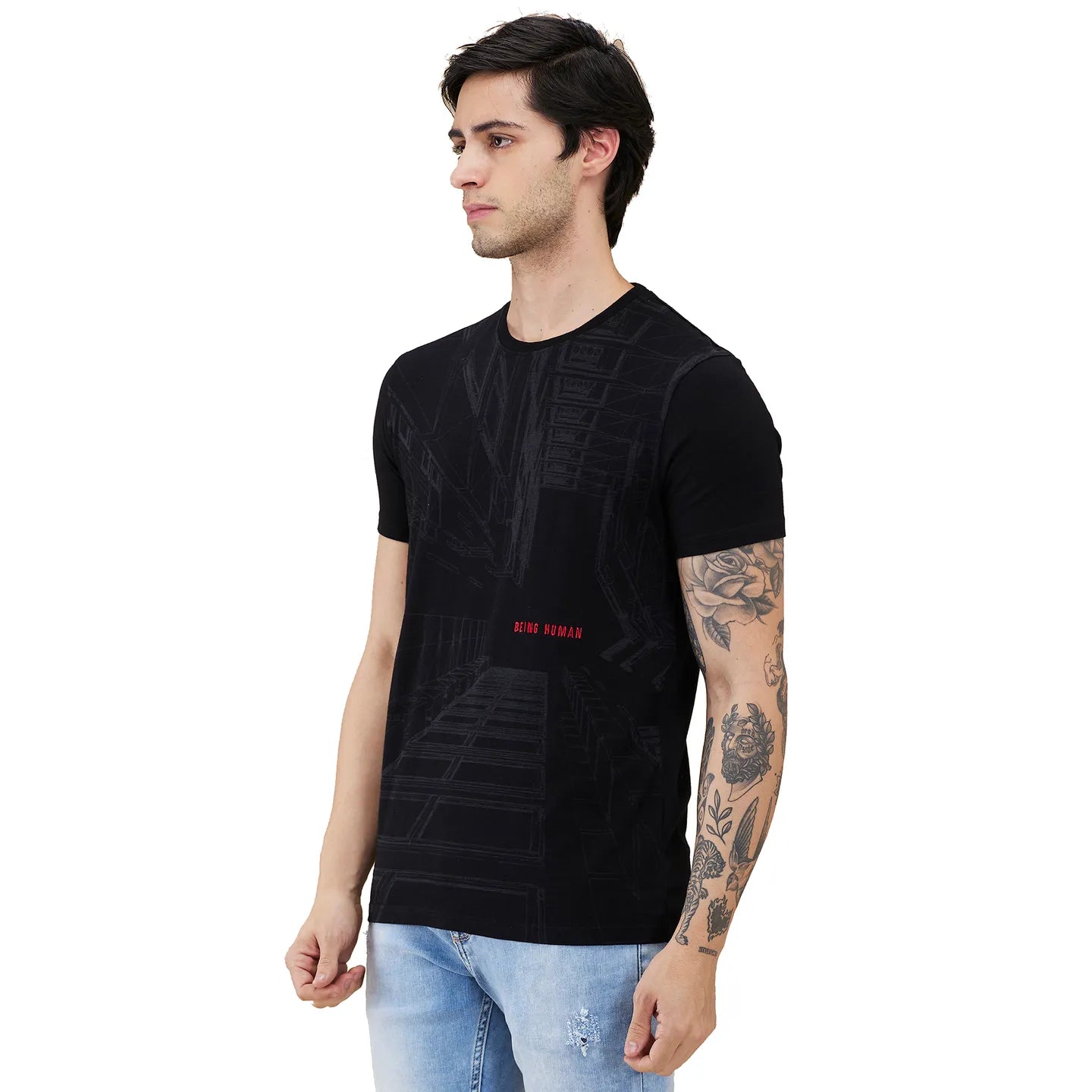 Black Sulpher Slim Fit Round Neck Men's T-Shirt by Being Human Clothing