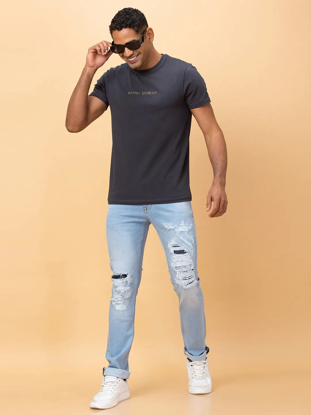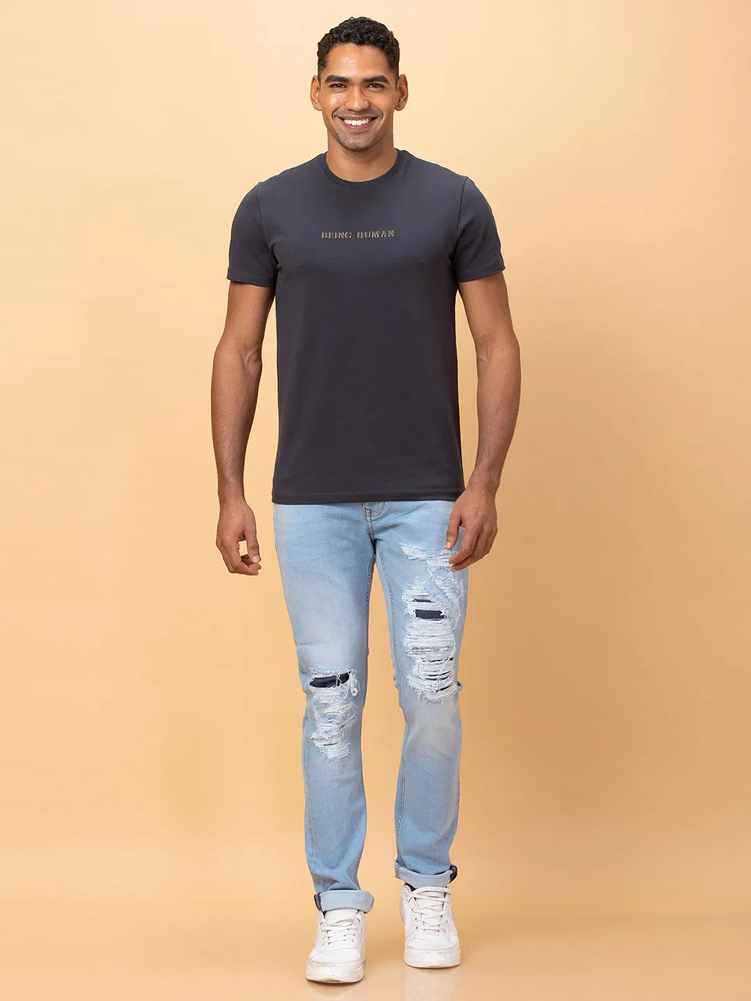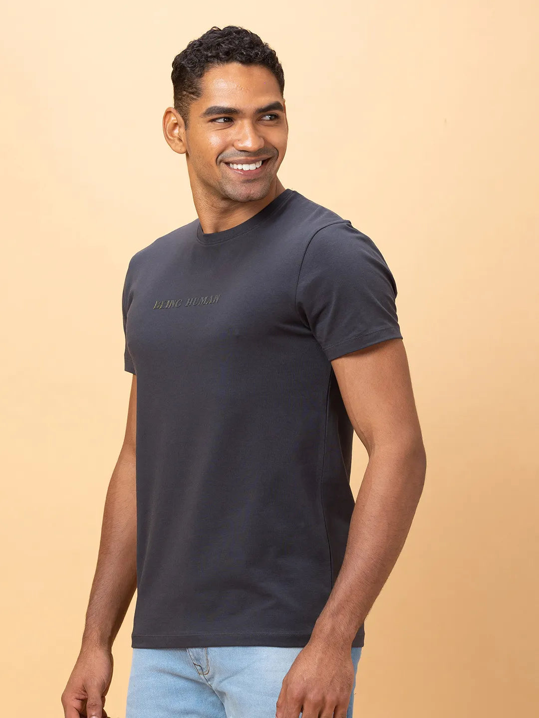 Charcoal Regular Fit Round Neck Men's T-Shirt by Being Human Clothing