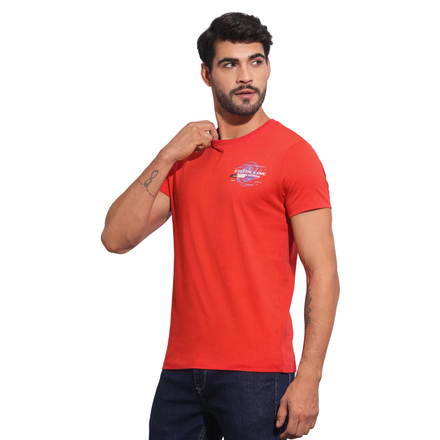 True Red Slim Fit Round Neck Men's T-Shirt by Being Human Clothing