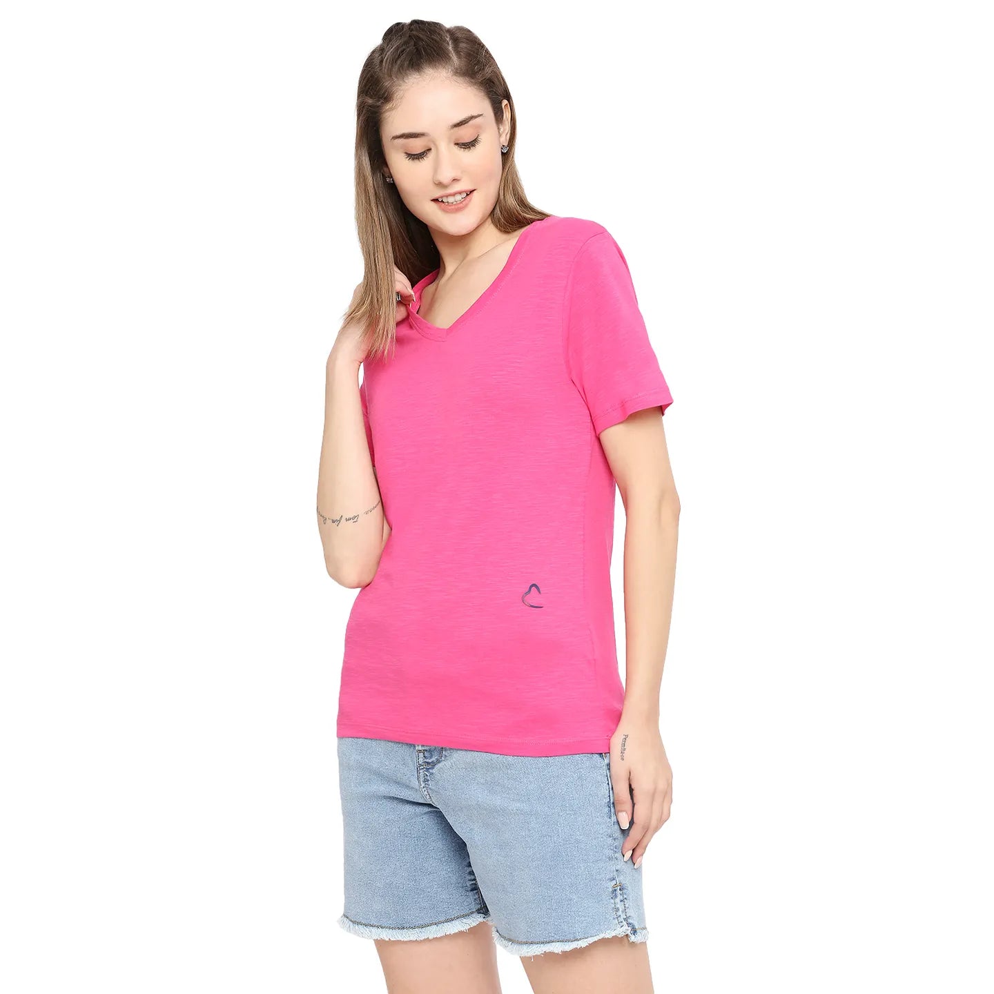 Upgrade your everyday wardrobe with the Being Human PINK GLO color Women’s T-Shirt, designed for comfort, versatility, and effortless style. Made from soft, breathable fabric, this T-shirt ensures all-day comfort, making it perfect for casual outings, home wear, or weekend relaxation. Featuring a classic fit, it pairs seamlessly with jeans, shorts, skirts, minimal touch, making this T-shirt a versatile and essential wardrobe staple.