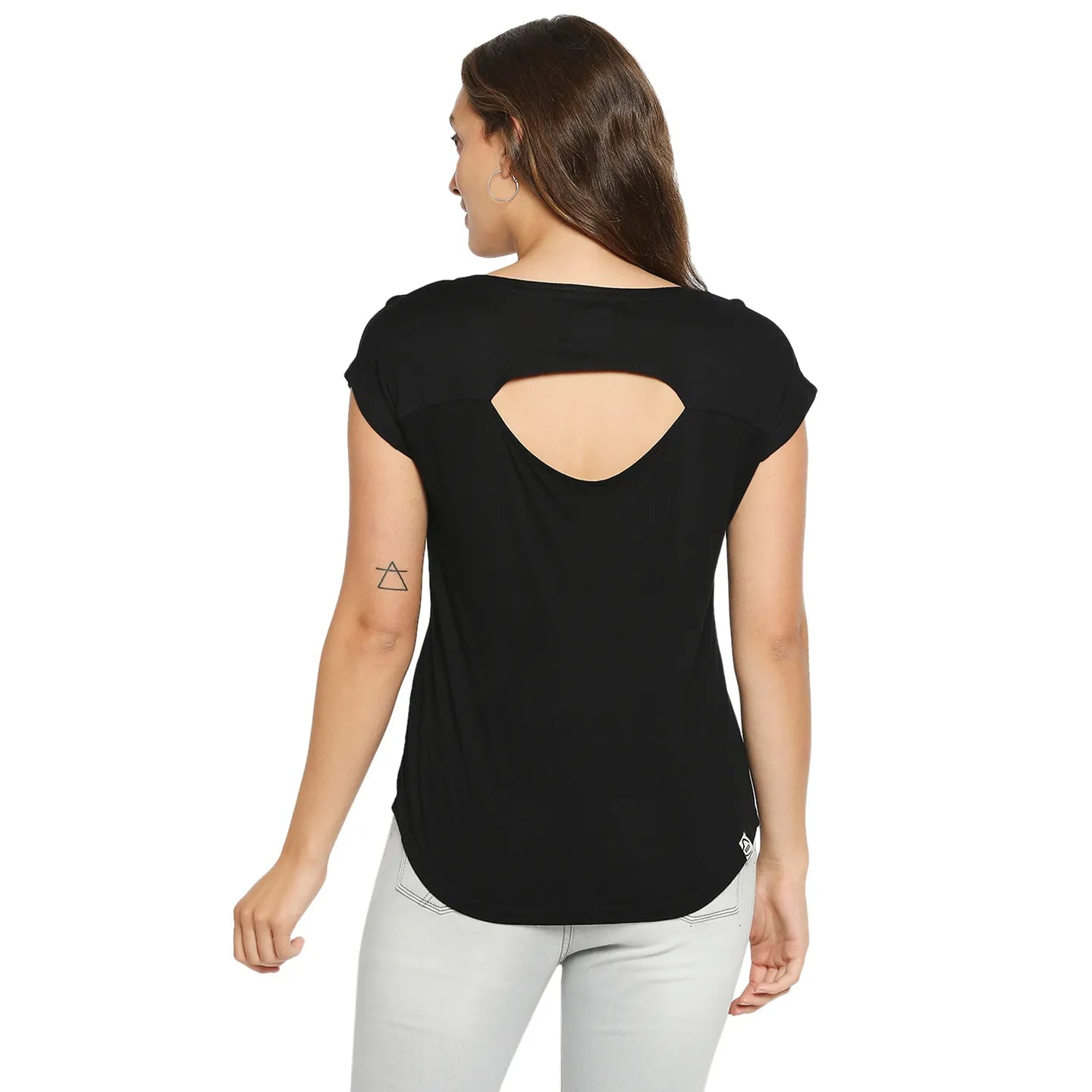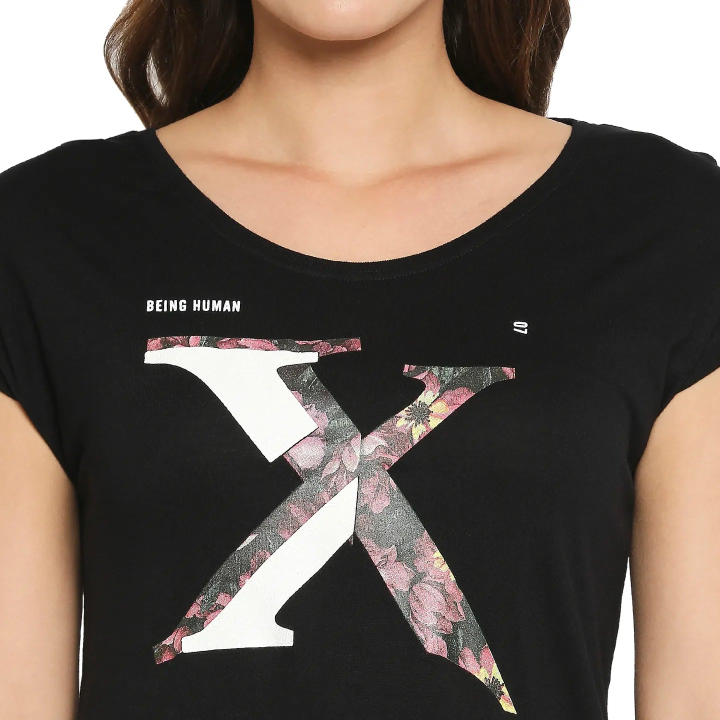Black Easy Fit Round Neck Extended Sleeves Modal Jersey Women's T-Shirt by Being Human Clothing