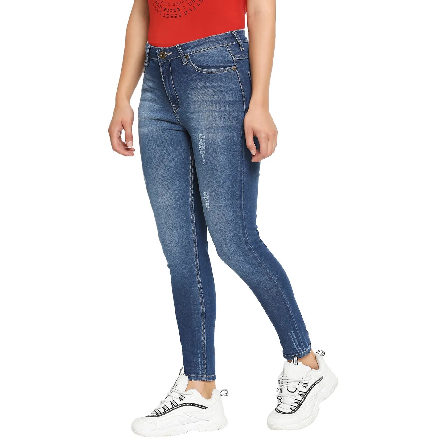 Blue Mid Rise Super Skinny Fit Cotton Women's Denims by Being Human Clothing