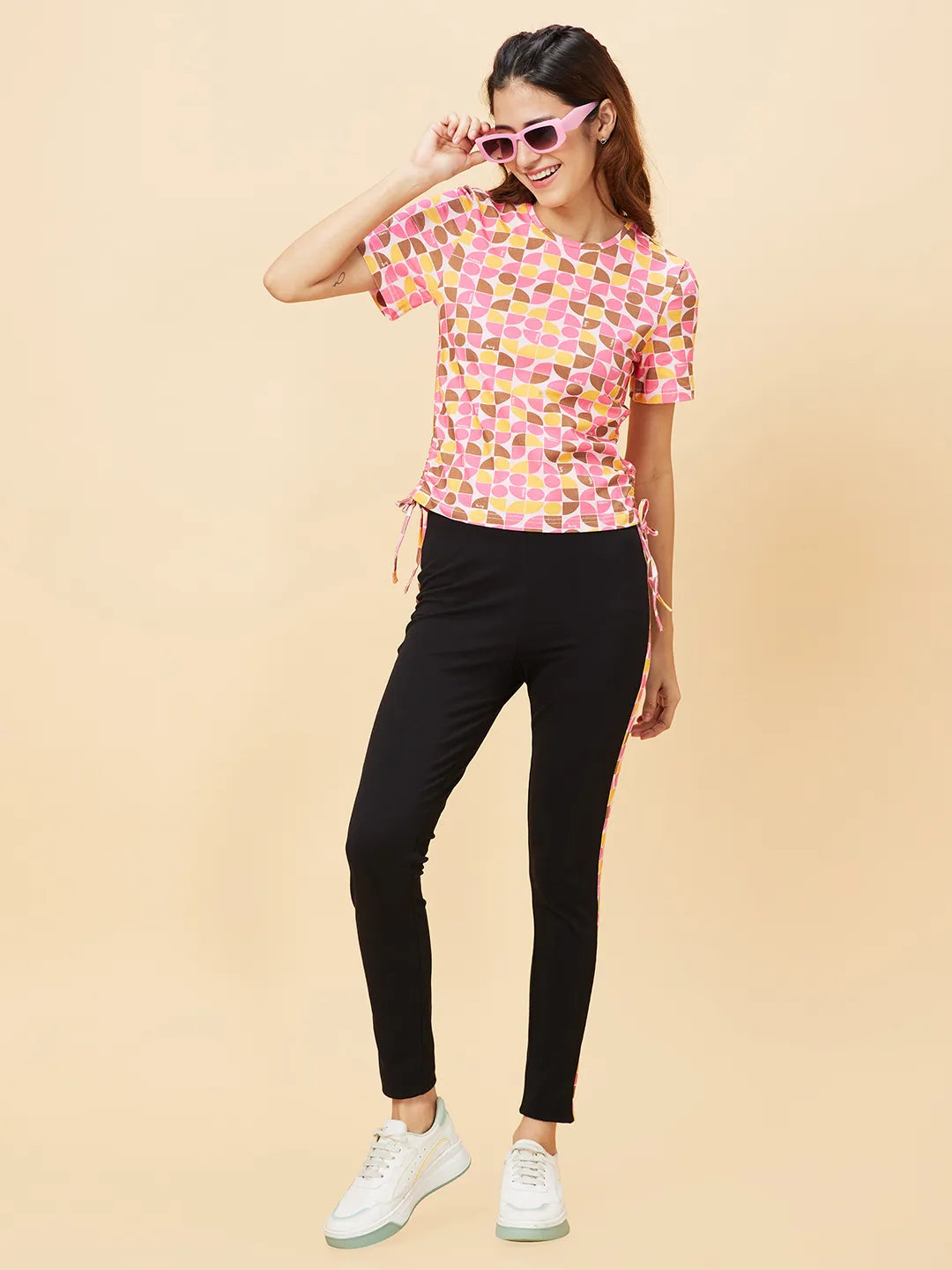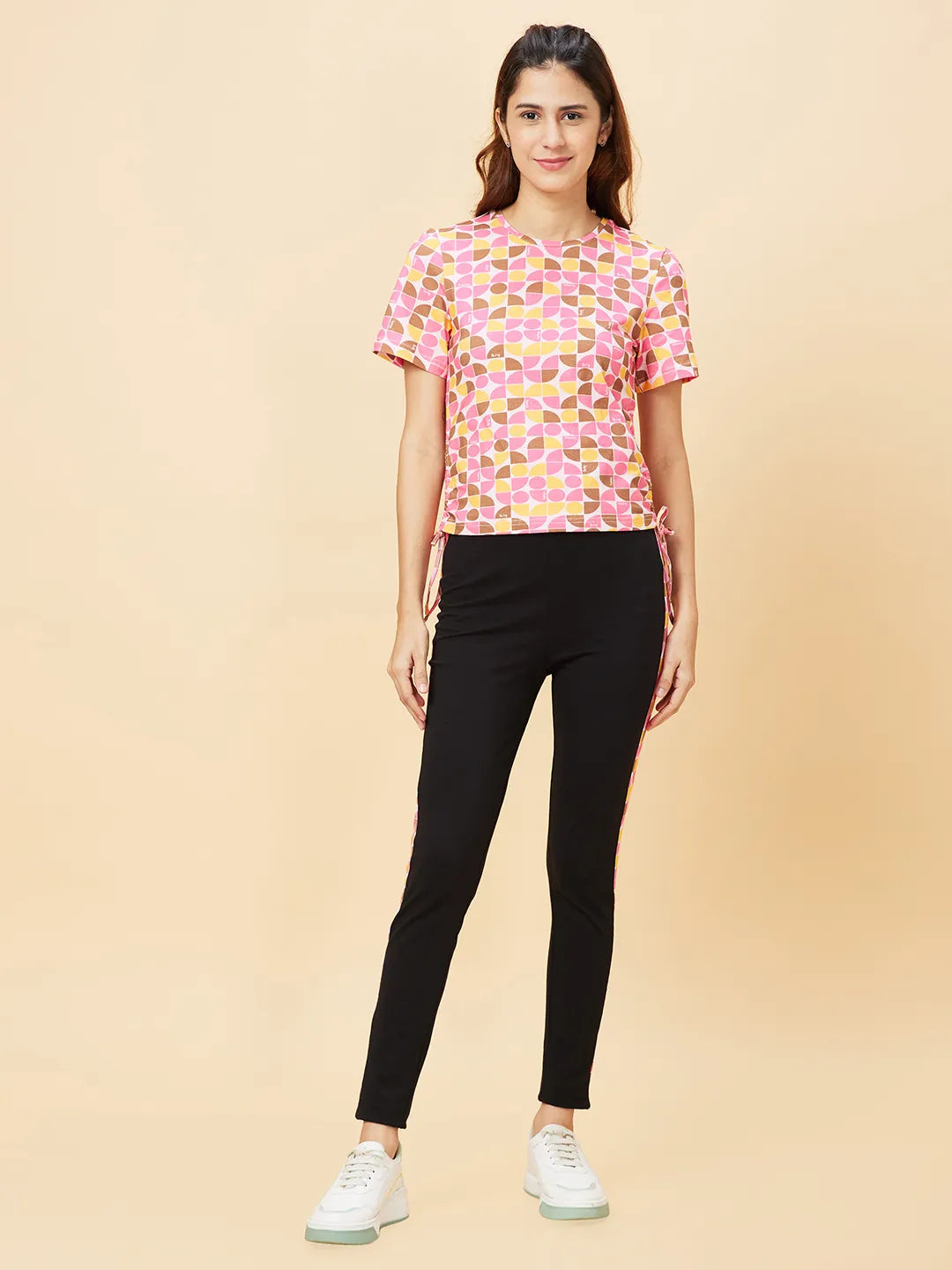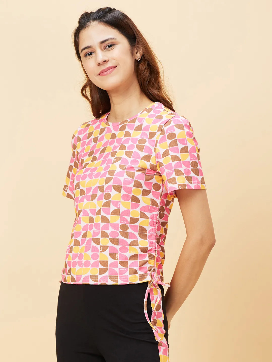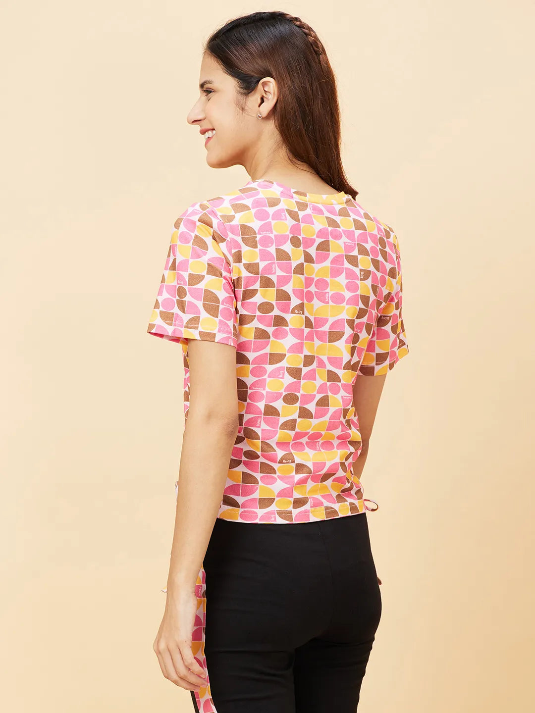 Pink Slim Fit Women's Cotton Cropped T-Shirt By Being Human Clothing
