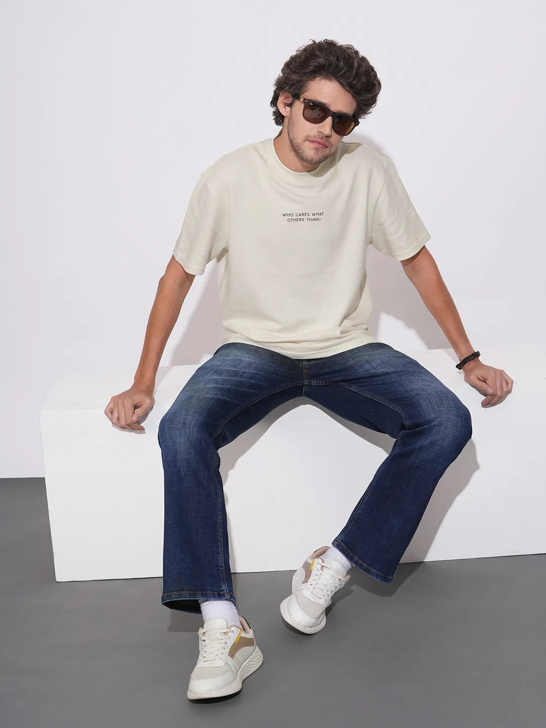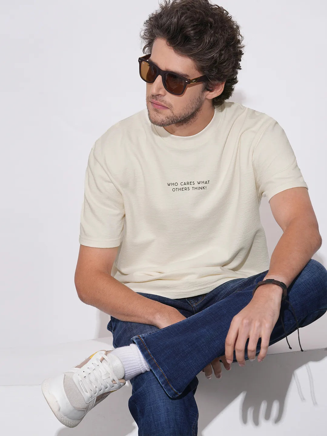 Being Human Ecru Moderno Fit Crew Neck T-shirt For Men