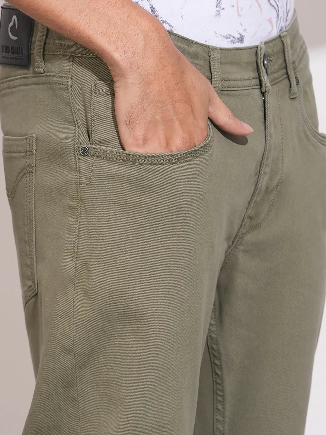 Being Human Olive Slim Fit Denims For Men