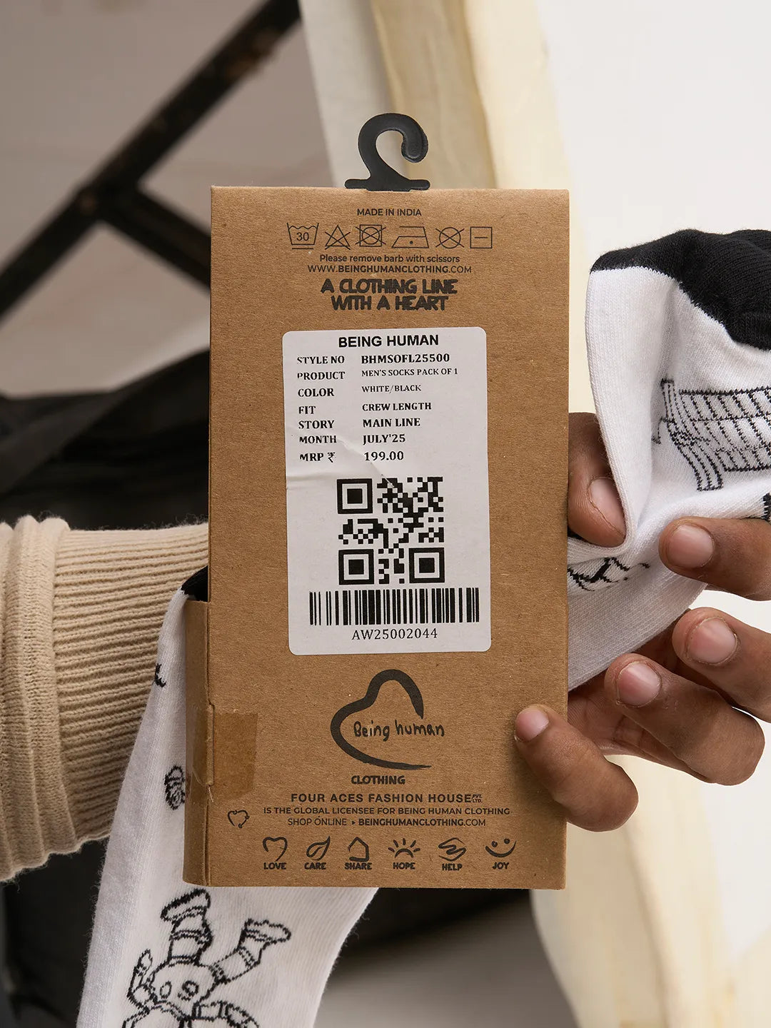 Black Cotton Blend Men's Socks by Being Human Clothing