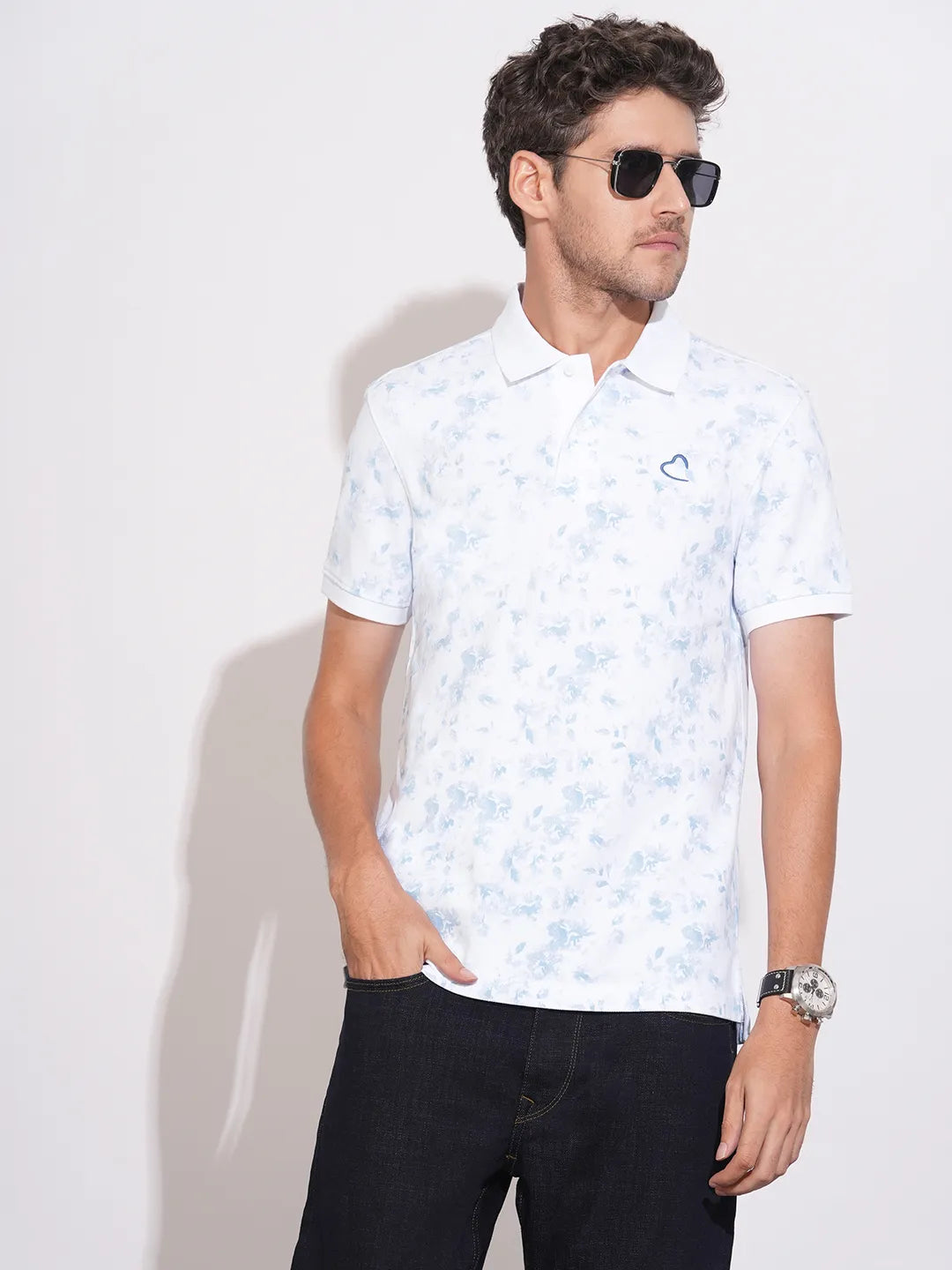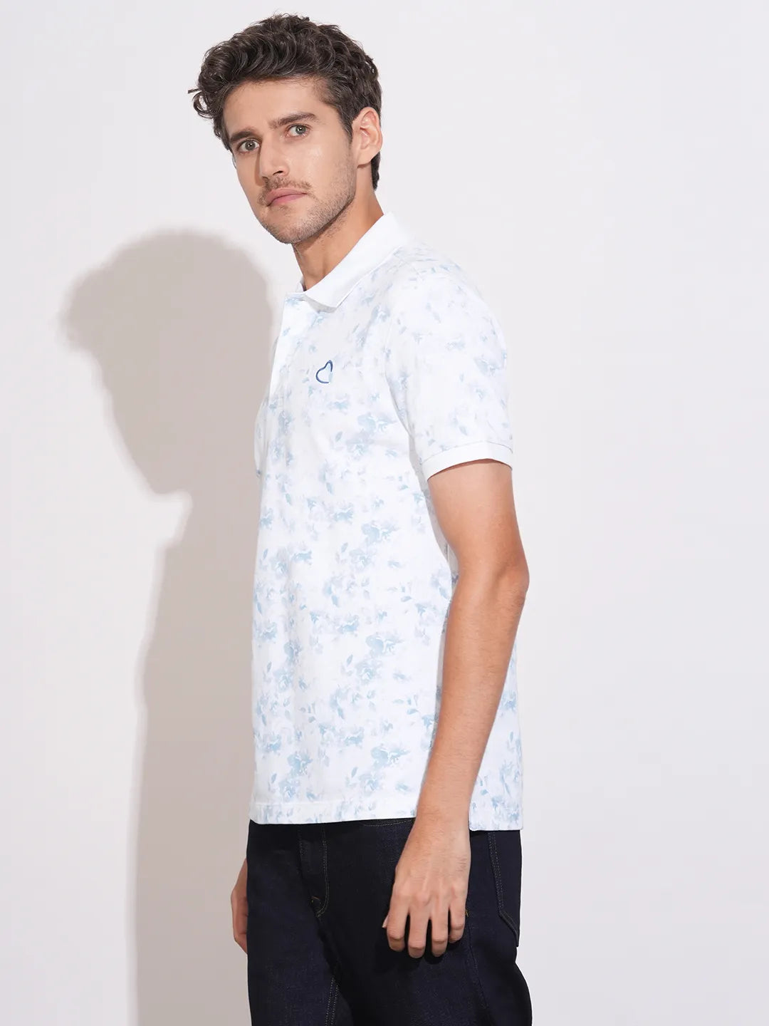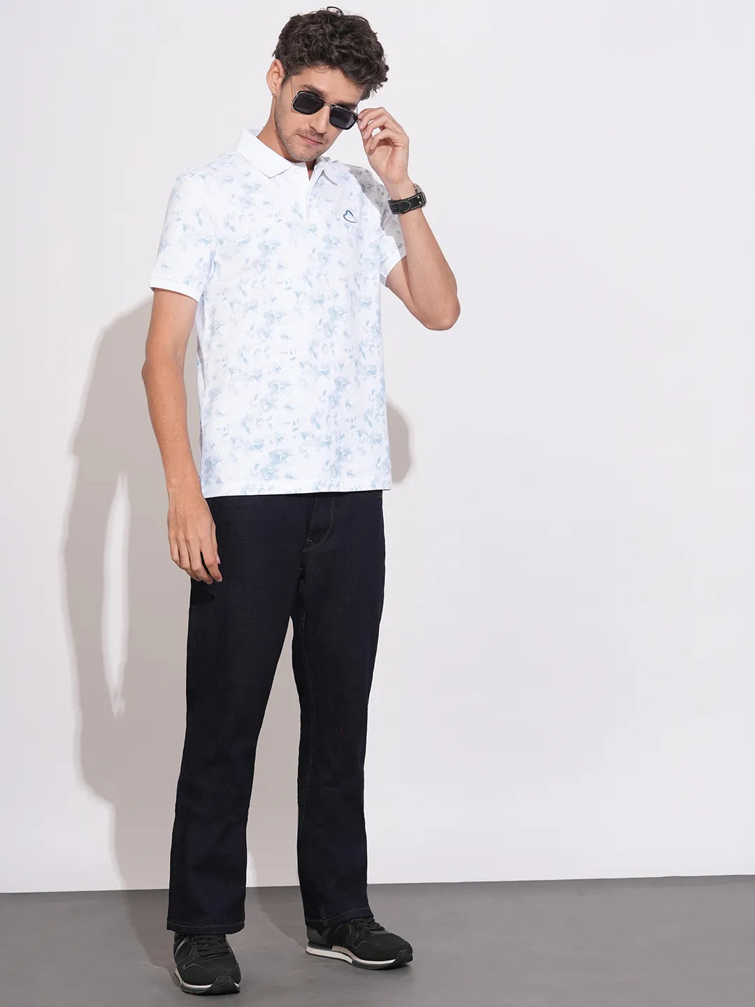 Being Human White/Blue Regular Fit Polo T-shirt For Men
