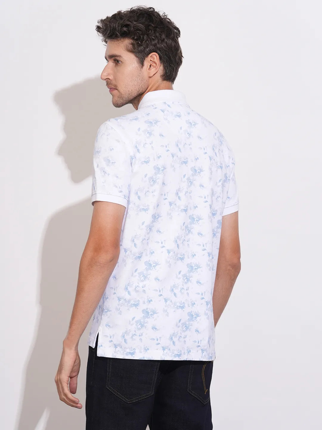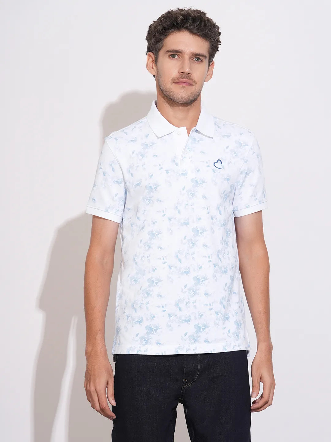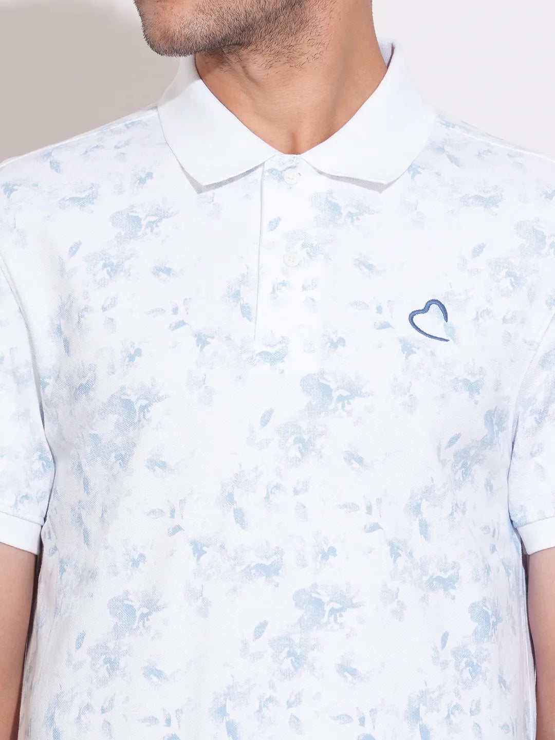 Being Human White/Blue Regular Fit Polo T-shirt For Men