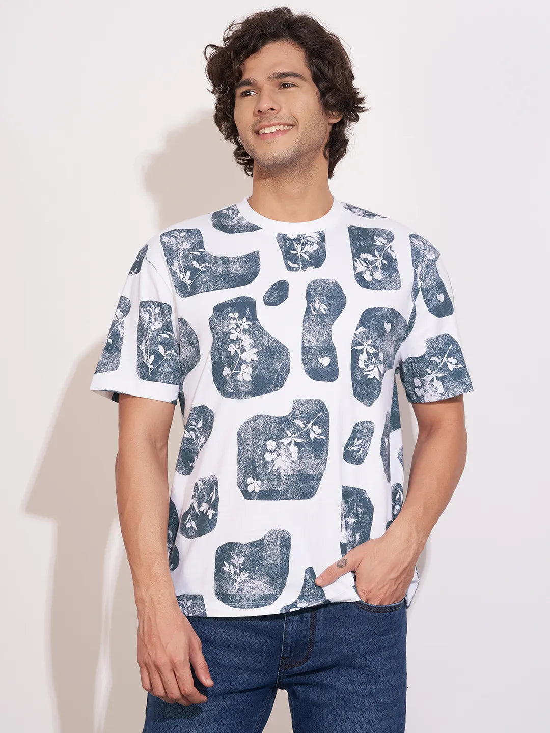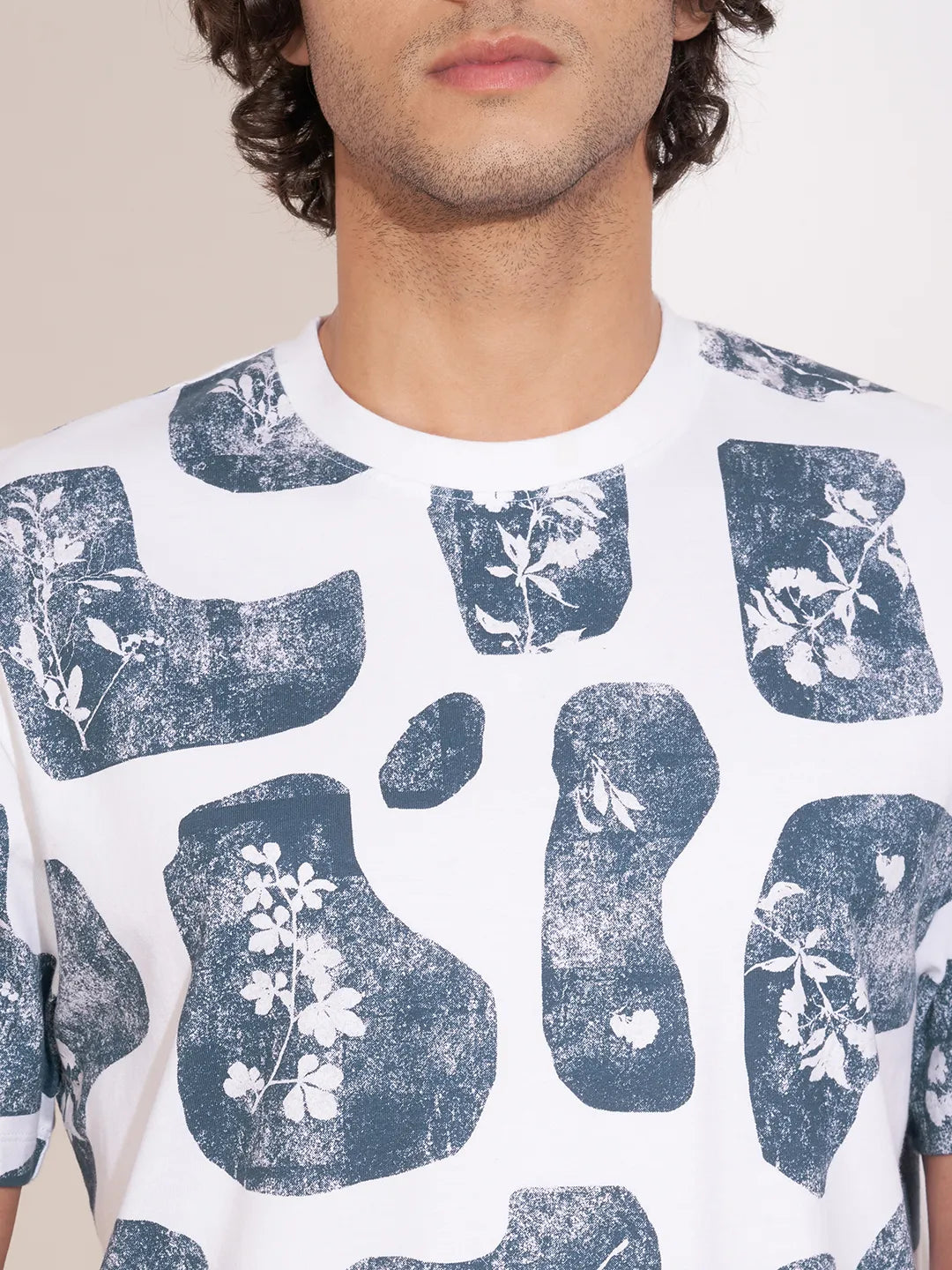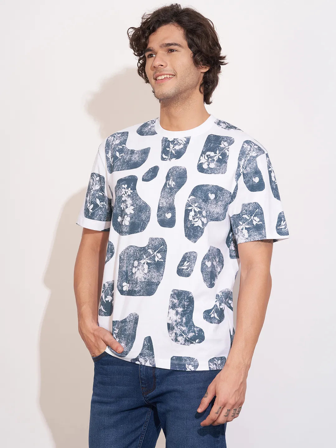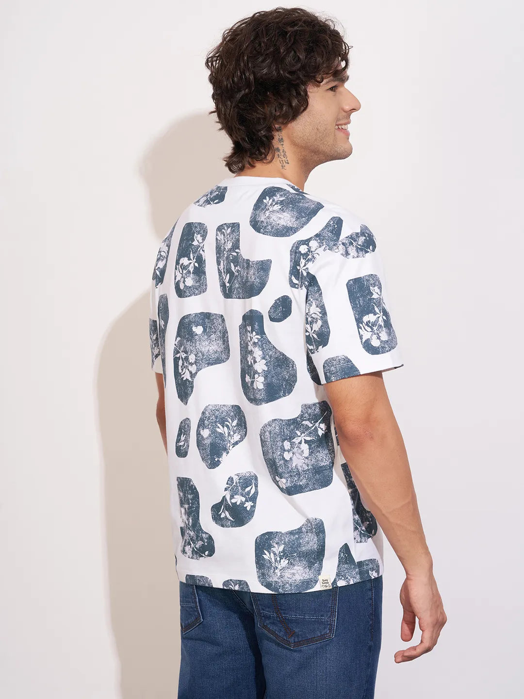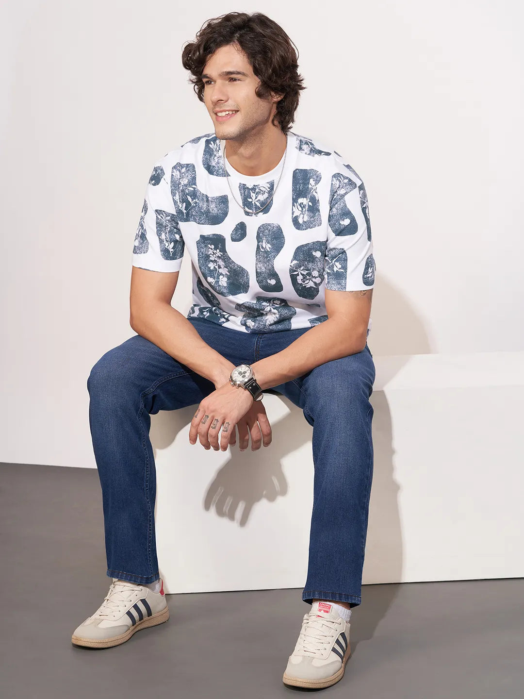 Being Human White/Blue Relaxed Fitround Neck Crew Neck For Men