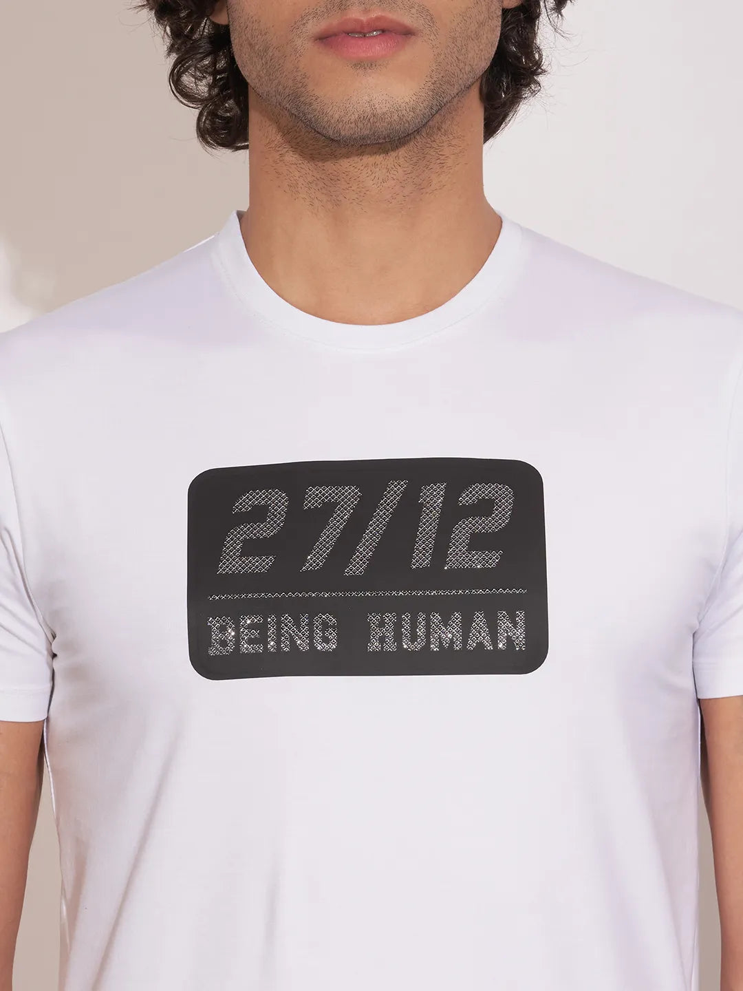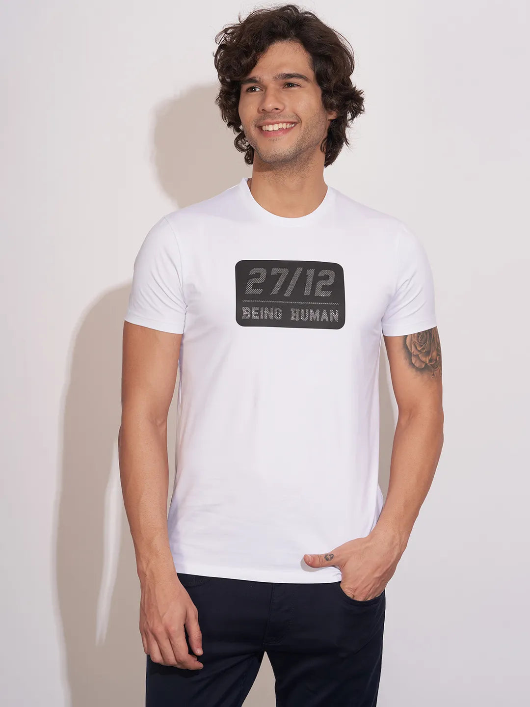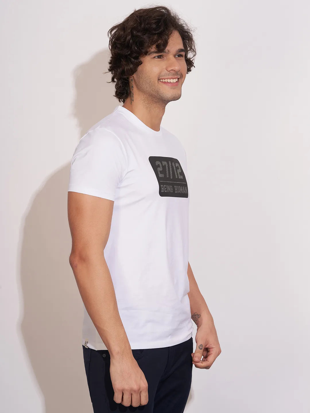 Being Human White Regular Fitround Neck Crew Neck For Men