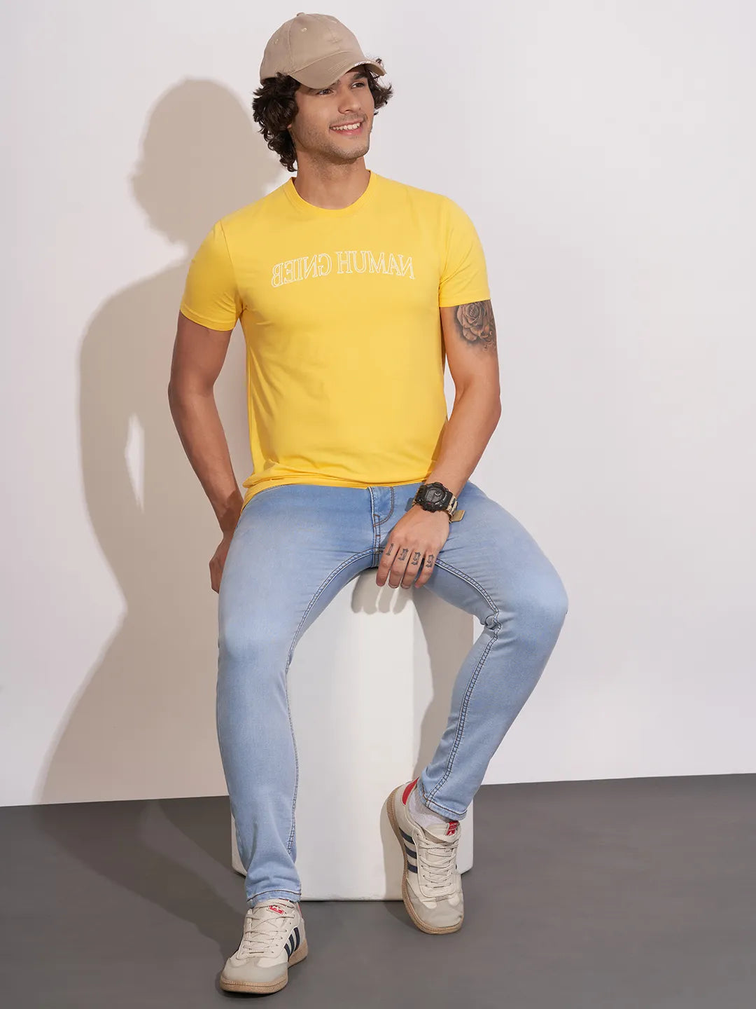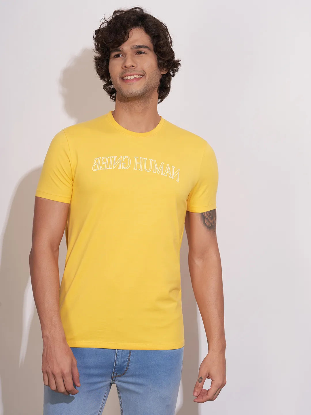 Being Human Yellow Regular Fitround Neck Crew Neck For Men
