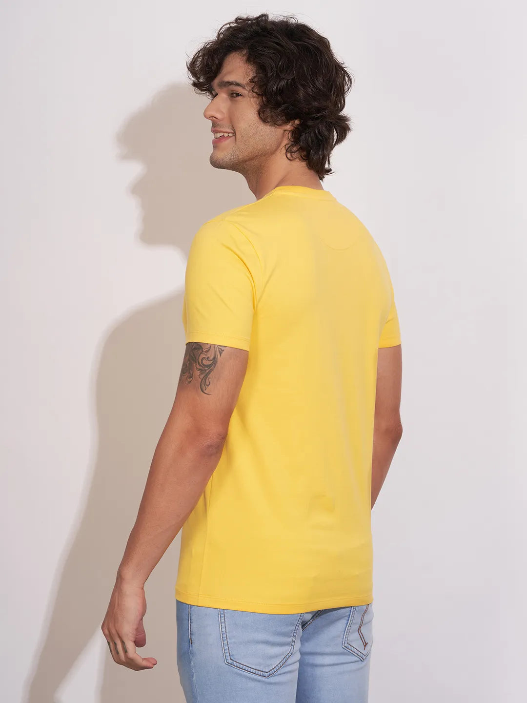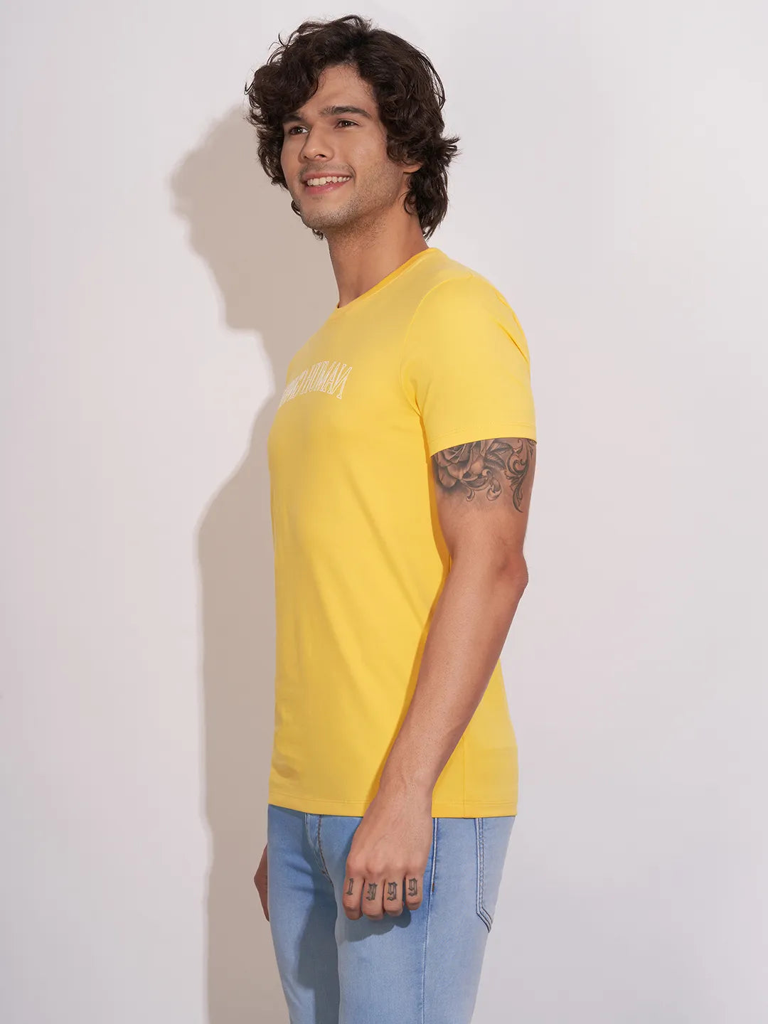 Stay stylish and comfortable with the Being Human Yellow Regular Fit Crew Neck For Men, crafted for everyday wear. Made from soft, breathable fabric, this T-shirt ensures all-day comfort while keeping you looking effortlessly casual. Its classic crew neck design provides a timeless appeal, making it perfect for pairing with jeans, chinos, or shorts.