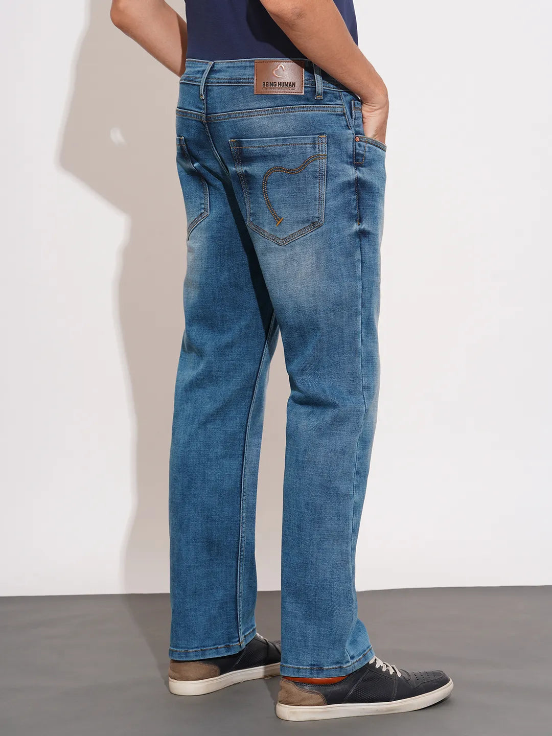 step out in style with this Being Human Mid Tone Straight Fit Jeans for Men's designed to offer a perfect blend of comfort, durability, and modern fashion. Crafted from high-quality denim fabric, making them ideal for everyday wear. This classic styling and contemporary fit give you a clean, versatile look that pairs effortlessly with T-shirts, shirts, and casual wear.Known for its stylish yet comfortable designs, Being Human brings you denim that complements your lifestyle while keeping your look effortlessly cool and refined. Whether you’re heading out for a casual day, evening outing, or weekend plans, these jeans ensure a perfect fit and reliable comfort.